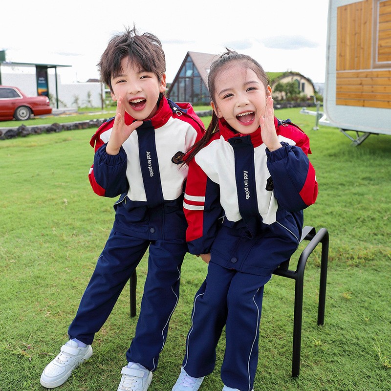 Enhanced Visibility and Style: The bold navy, white, and red color scheme with contrasting sleeve stripes and pant accents ensures students remain visible during outdoor activities while maintaining a sharp, coordinated appearance.