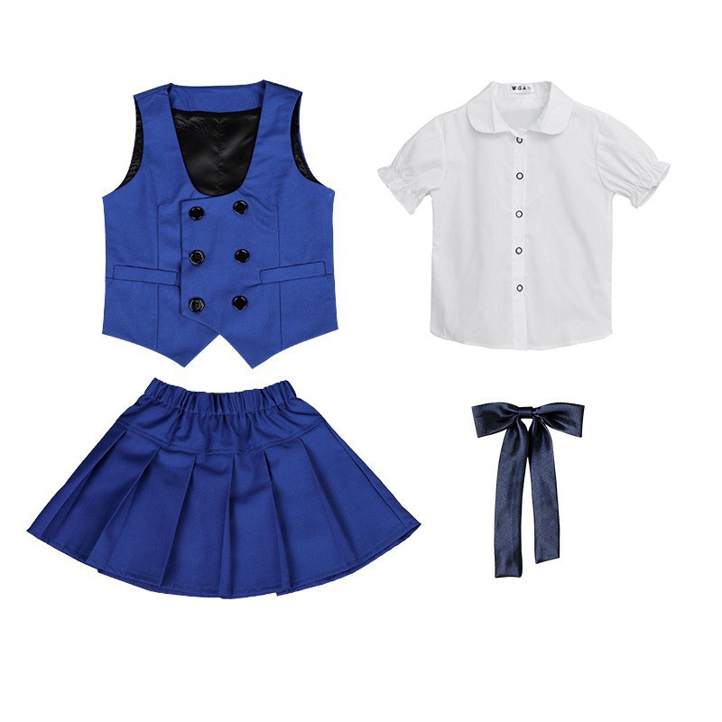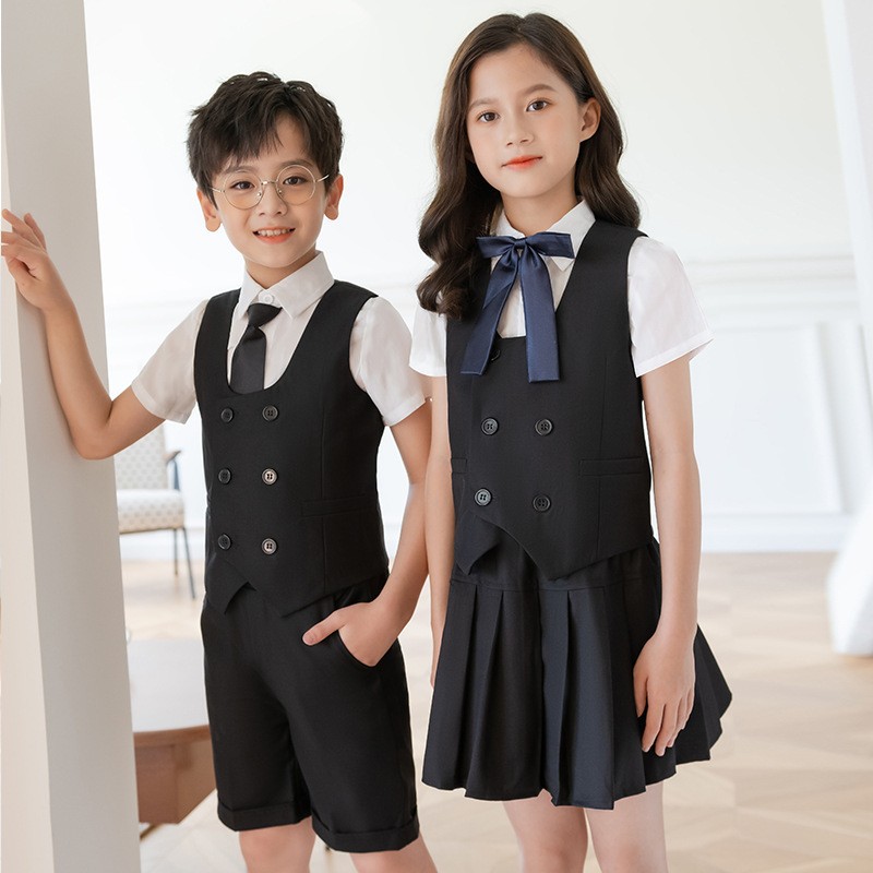 Distinctive Formal Detailing: The double-breasted vest design with coordinated neckwear creates immediate visual impact, establishing a sophisticated identity for special school occasions