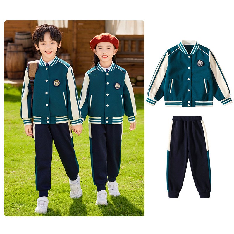 Coordinated Sportswear Elements: The baseball jacket and tapered pants blend traditional uniform requirements with contemporary athletic styling that students enjoy wearing.