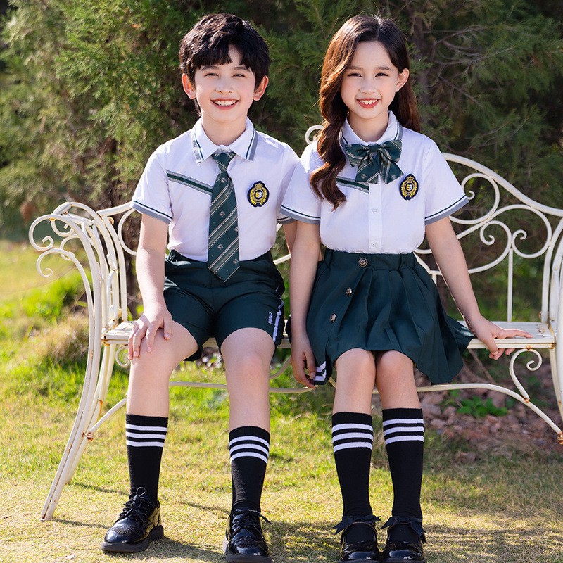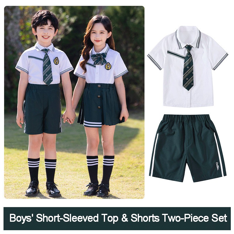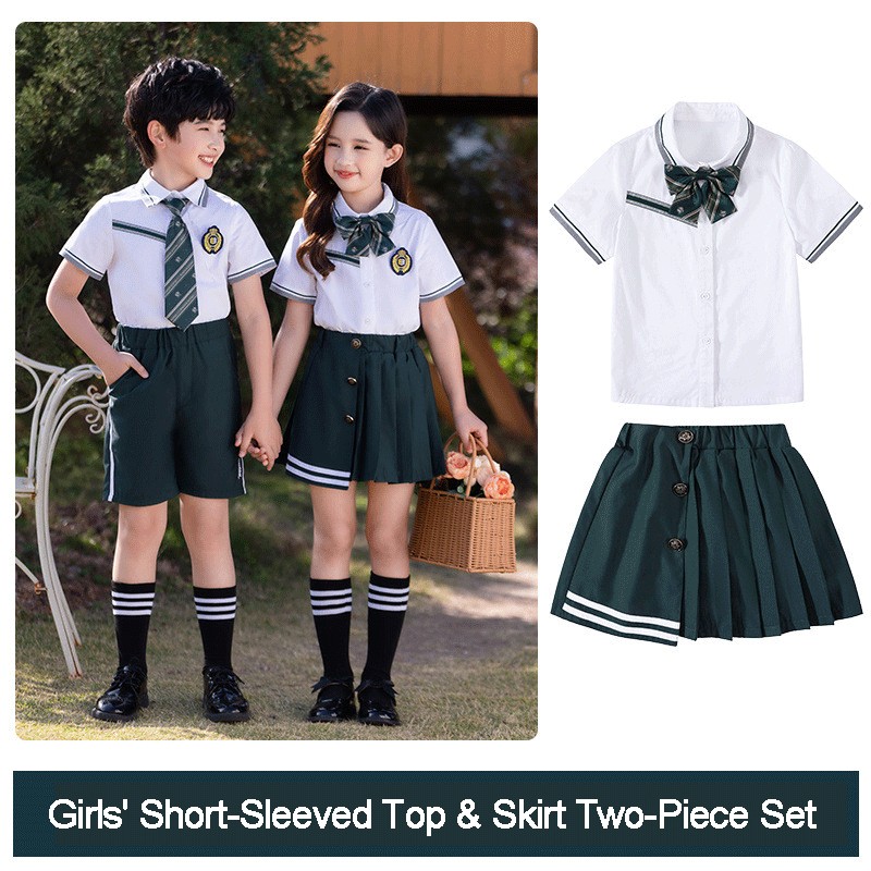 This elegant forest green and white collection combines traditional scholastic styling with summer-optimized comfort. The crisp color palette and refined details create a distinguished appearance suitable for both daily wear and special academic occasions.