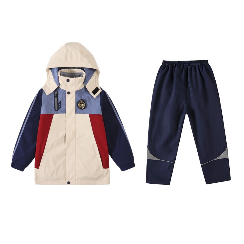 This vibrant technical set combines maximum visibility with all-weather protection, creating an ideal solution for active school life. The strategic color blocking and reflective elements ensure both style and safety during outdoor activities.