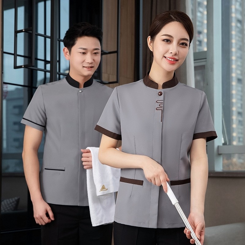 This practical uniform collection combines professional appearance with functional design, specifically tailored for cleaning staff requirements while maintaining a polished look that enhances service venue image.