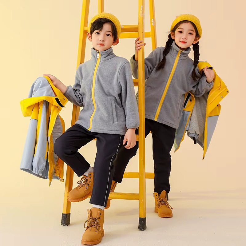 The outer windproof and waterproof jacket pairs seamlessly with the detachable fleece liner, creating three distinct wearing configurations. Students can wear either piece independently during milder conditions or combine both layers for enhanced insulation in colder weather. The versatile design ensures optimal comfort during classroom sessions, outdoor activities, and commuting in various seasonal conditions.