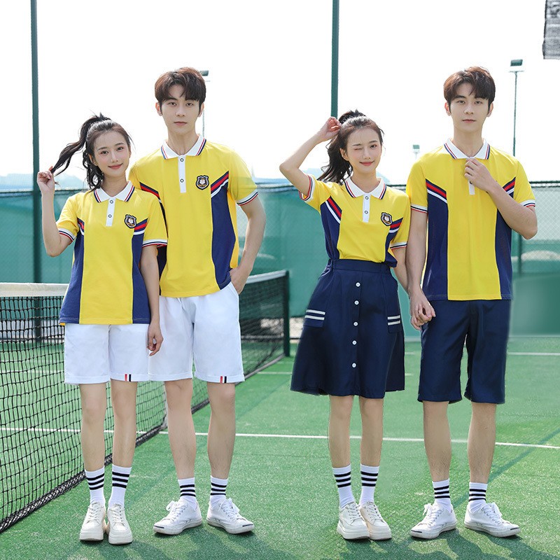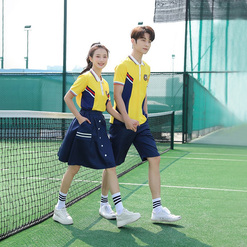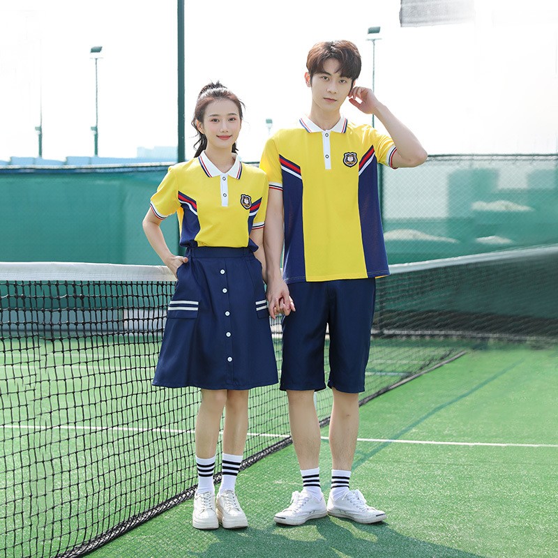 This vibrant yellow uniform set brings a fresh, energetic look to campus life while maintaining the classic appeal of academic dress. The cheerful color scheme and versatile bottom options create a cohesive collection perfect for warm-weather learning and activities.