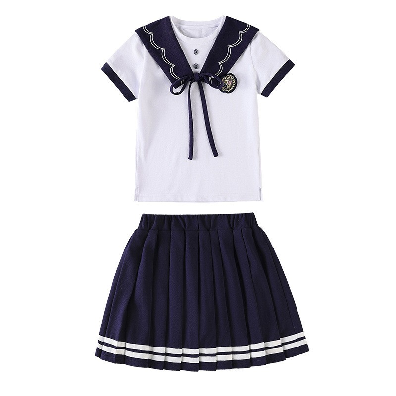 This coordinated collection offers tailored solutions for warm-weather school wear, combining classic styling with practical summer comfort. The crisp white and navy palette creates a unified appearance while accommodating different design preferences for boys and girls.